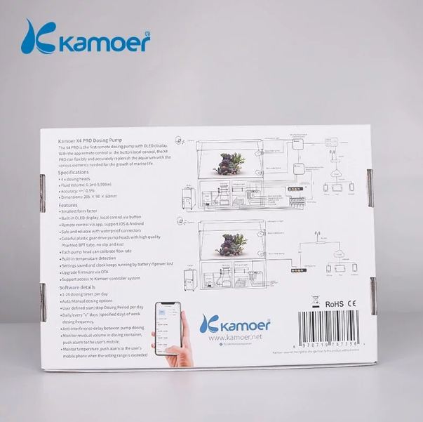 The new Kamoer F4 PRO Wifi Doser Liquid Dosing Pump is the latest state of the art controllable dosing system from Kamoer. Each unit includes a Wifi connection which allows the doser to be controlled via iPhone or Android.